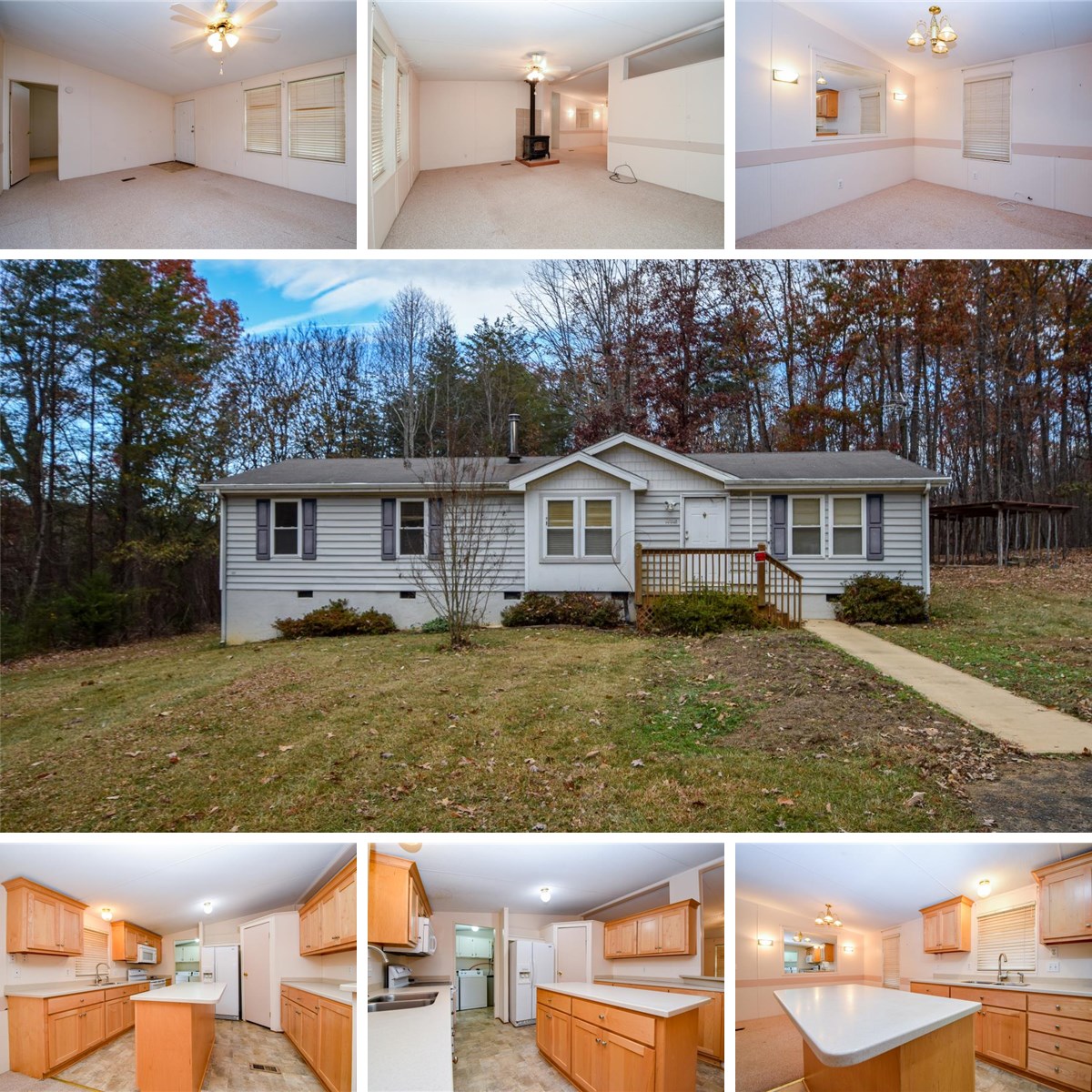 Nestled on a private 5 acres, this 4 Bedroom, 2 bathroom home offers easy one-level living. The open floor plan offers a spacious kitchen with large island and pantry closet, dining area, formal living room, laundry, true primary suite w/ en suite bathroom, soaking tub and walk-in closet, plus 3 additional bedrooms. Exterior boasts expansive deck. carport, and storage shed. This property is conveniently located just minutes to Smith Mountain Lake State Park.